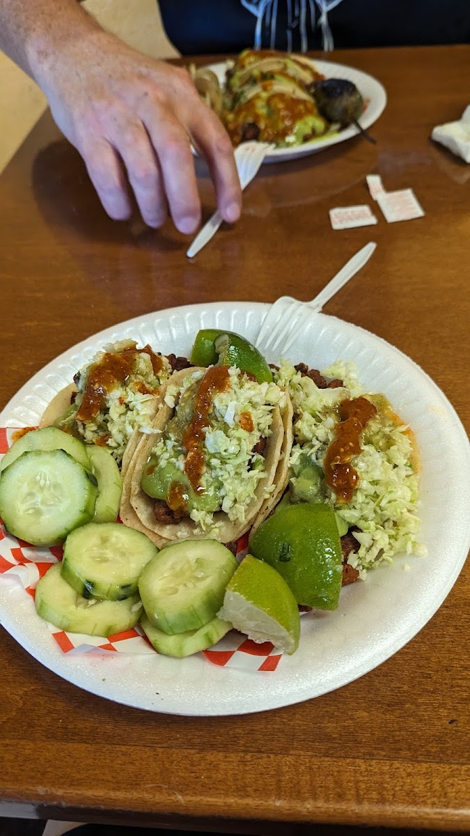 Hidden gem, mainly locals who are Spanish speaking only but Very authentic Mexican food with no frills, you can order in English no problem. In a mixed use building so drive way into parking lot can easily be missed. Plenty of parking and the smell of charcoal is a pleasure and welcoming sign you are in the right place. Dining room is small but has a great salsa / topping bar with many choices including roasted onions and peppers and a warm salsa, as well as cilantro, lime, pickled veggies, multiple red and green salsa choices with individual containers and bags for everything. Authentic Mexicans sodas and beer available as well. Food is always made to order and comes out hot and fresh, Tacos, burritos and quesabirria are my favorite but honestly everything here looks amazing. I've been on an Al Pastor Burrito kick lately. Good service and good prices have made me a regular.